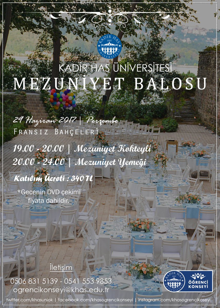 Kadirhasuniversitesi On Twitter Khas Mezuniyet Balosu 29 Haziran Da Fransiz Bahceleri Nde Duzenleniyor Detayli Bilgi Icin Ogrencikonseyi Khas Edu Tr 0506 831 51 39 Https T Co 9n4hzigtws