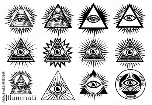 All Seeing Eye Illuminati Symbols Masonic Sign Conspiracy Of Elites The Jewish Star Sign Of David New World Order Vector Illustration Set Buy This Stock Vector And Explore Similar Vectors At Adobe