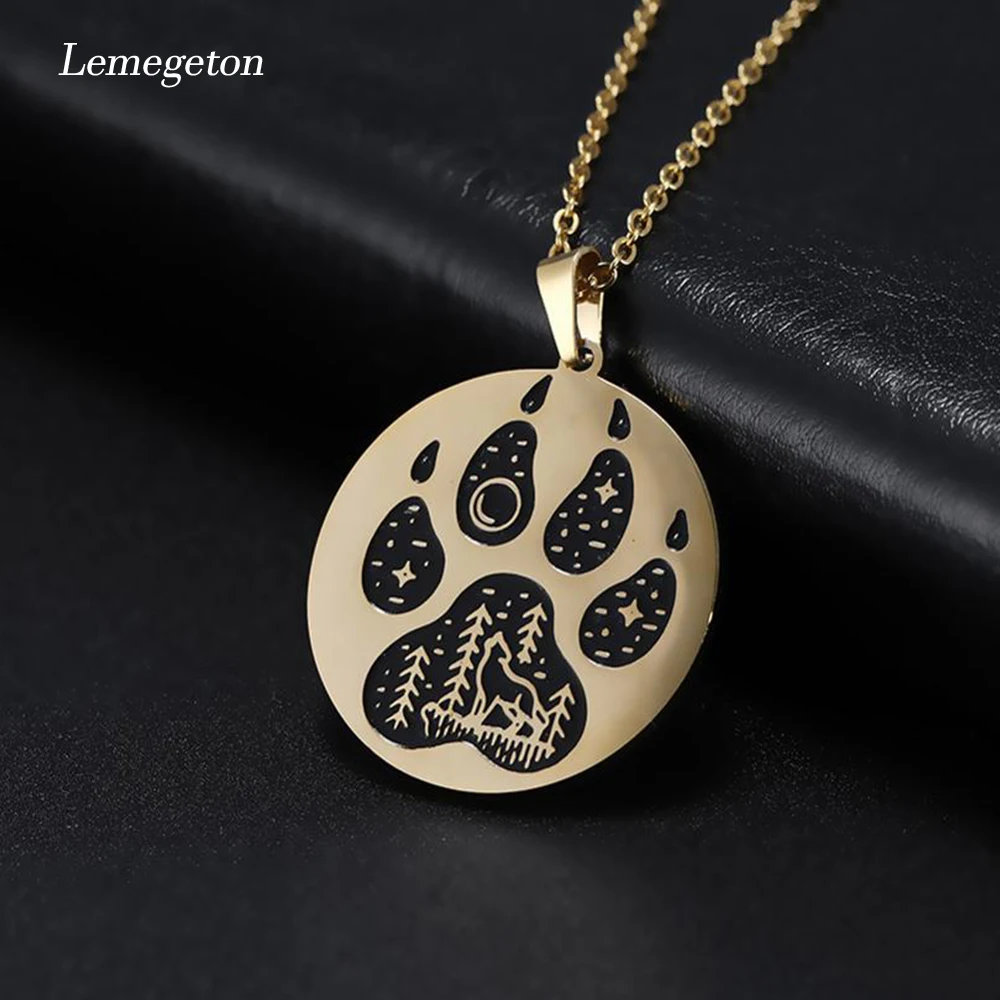 Lemegeton Sevimli Ayak Izleri Kolye Yalniz Kurt Ayi Tilki Kopek Pence Baski Kolye Paslanmaz Celik Taki Kadinlar Icin Kazak Kolye Zincir Kolyeler Aliexpress